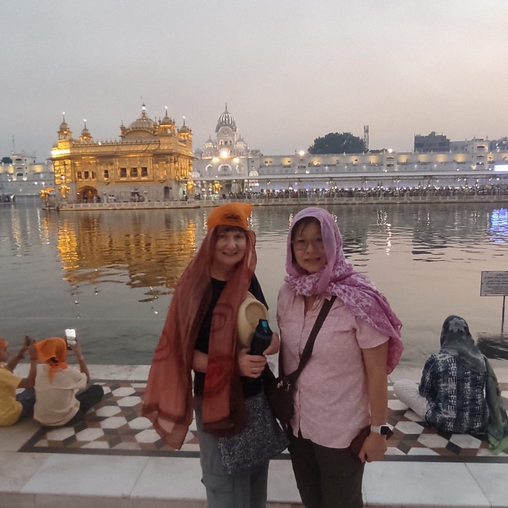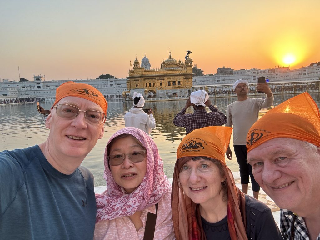 Then onto Golden temple as sunset arrived. Sally and I got mobbed for some reason (film star looks?) for group photos