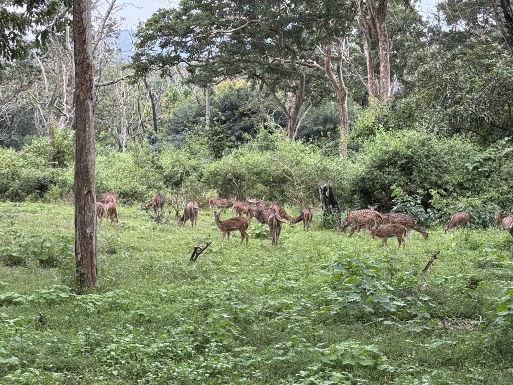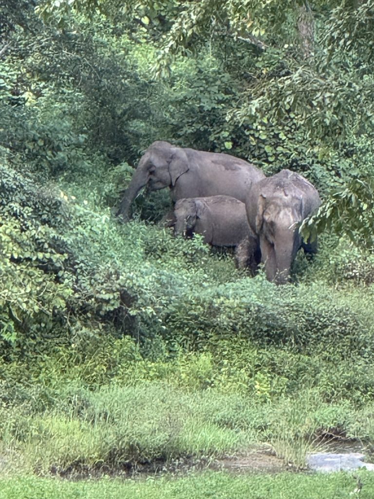 We saw Peacocks in the wild, Spotted Deer, and wild elephants in their natural habitat