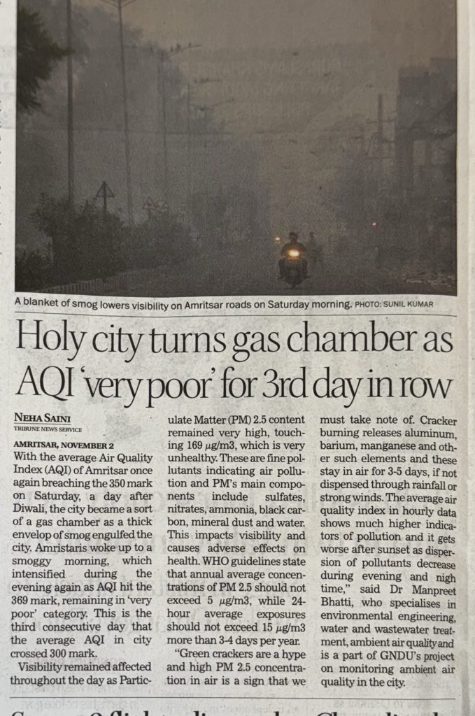 Amritsar has been troubled by very poor air (beyond the normal) with loads of Dipavali firecrackers and field stubble burning. Gets in your throat