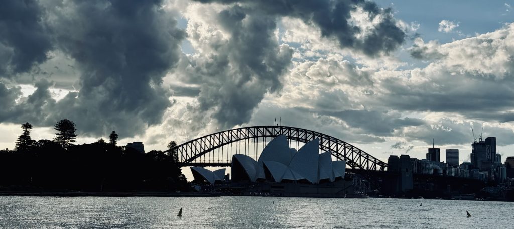 Turned out to be busier day than expected! After the usual coffee and fantastic Foccacia BLT at Hollys (Ying had “Winter rice porridge” in the heat) we headed into town for more coffee (original destination closed) but picked up a decent iced latte anyway! Promenaded along Darling Harbour (no relation to Grace Darling as we wondered), round Barabgaroo Reserve with veiws across to where Lulu works and SHB, then around via The Rocks to the Botanical Gardens