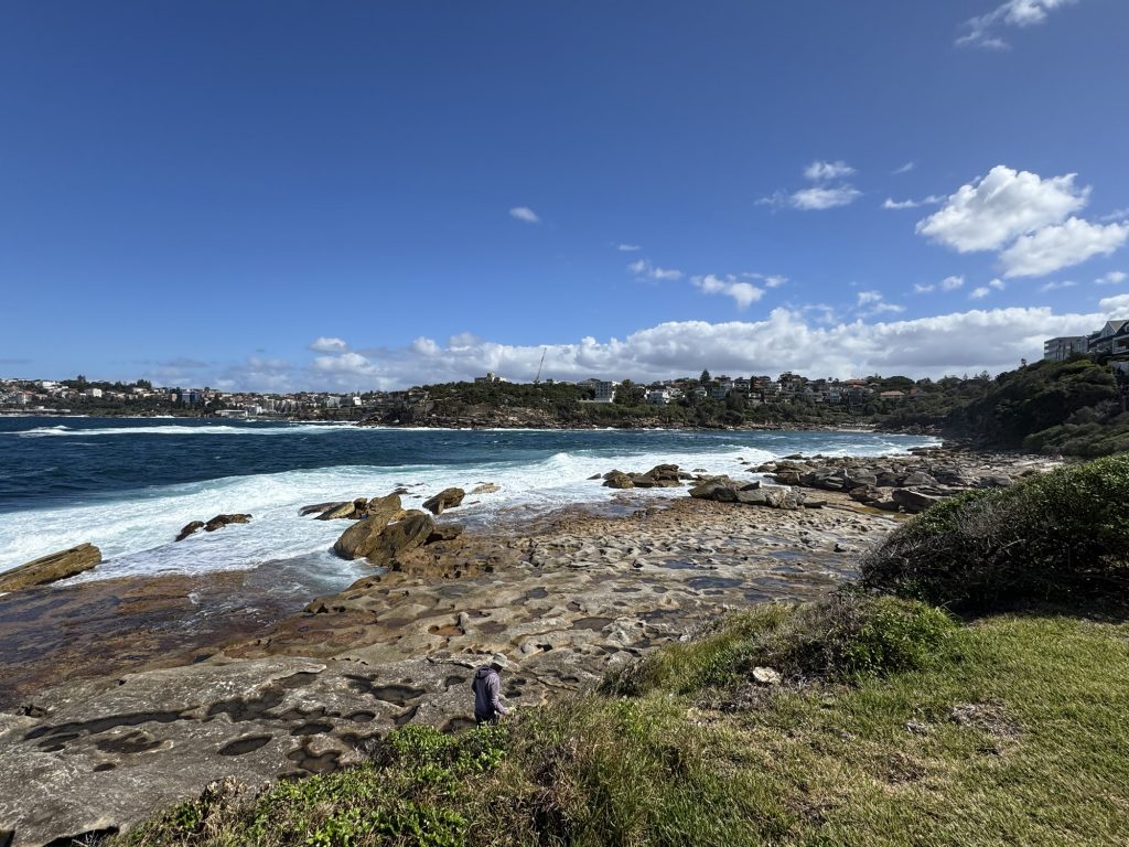 Off to Coogee. We took the bus down to Bondi Beach and found a very nice coffee at AKT cafe. Had bacon and egg bagel, good, and an egg and chorizo bagel (but the chorizo was more like a frankfurter…) disappointing