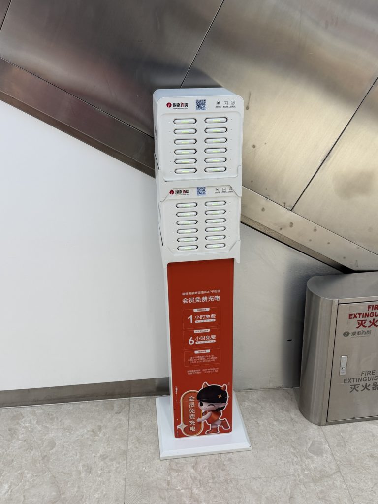 These boxes are everywhere. Basically power bank stations. Scan the code, pay about 3yuan (30p) and out pops a charger. Replace in another station