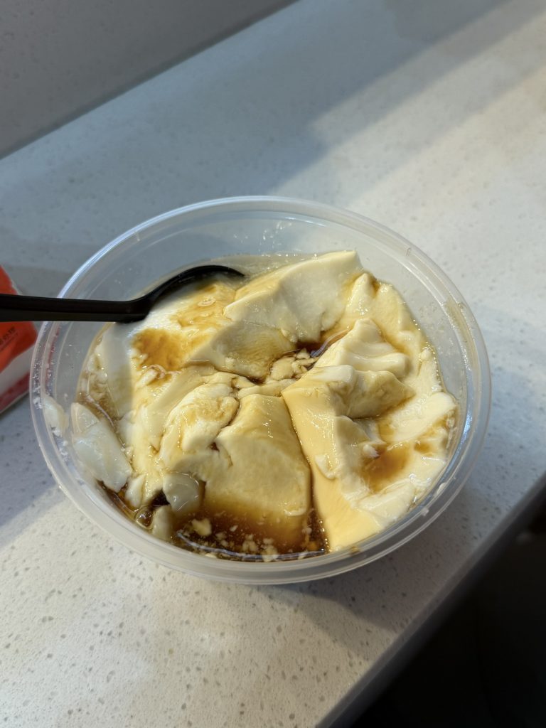 Eventually Ying spotted pudding so she had bean curd in syrup (tofu fa)
