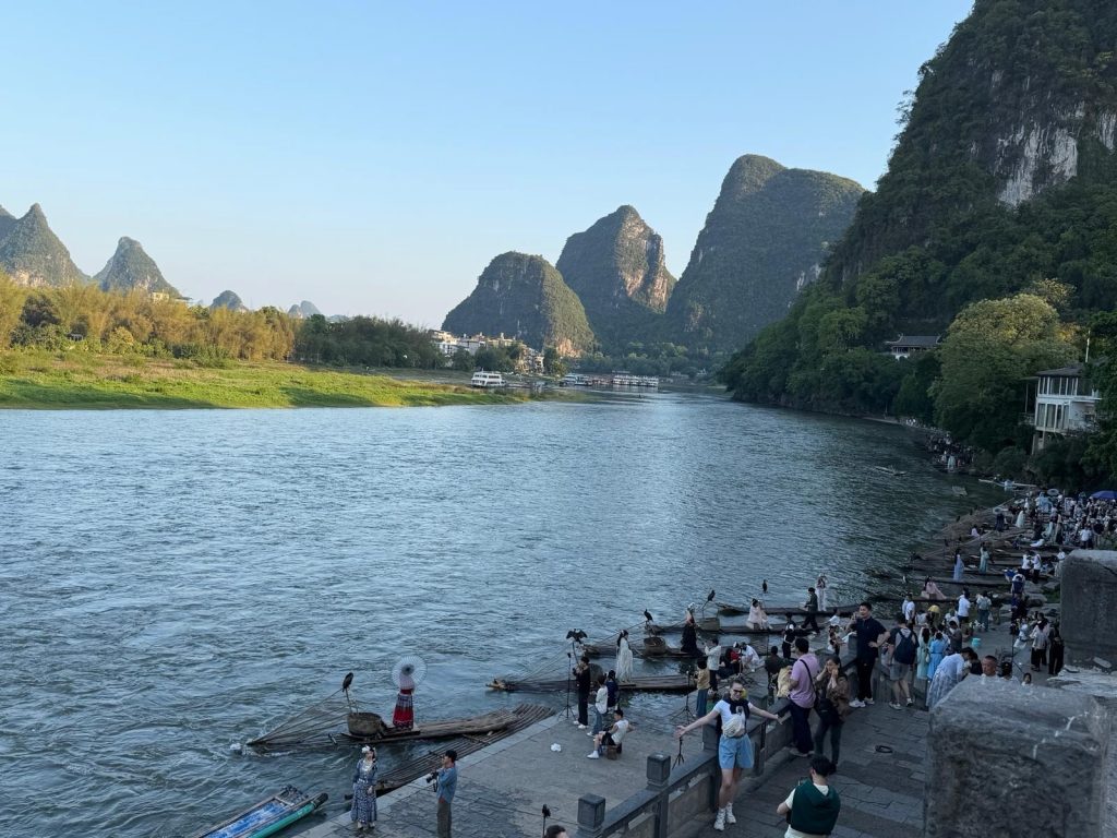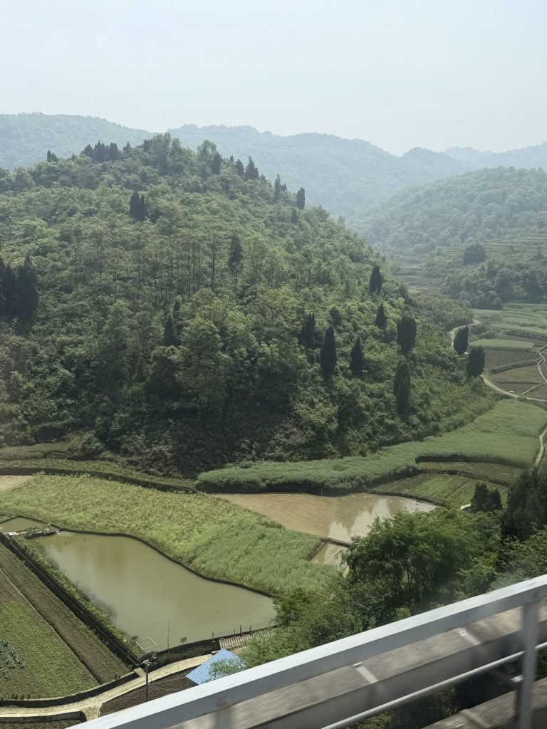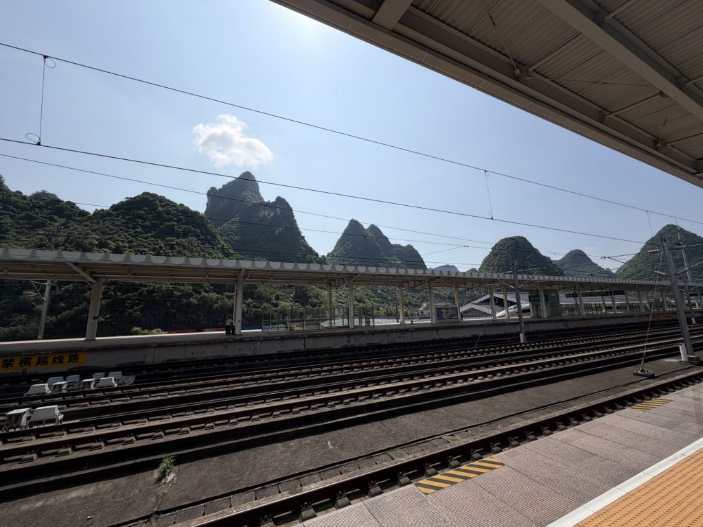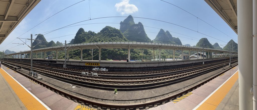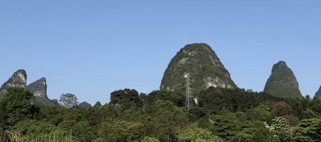 5hr train to Guilin area, Yangzhou for 4 nights. Quite pretty journey through similar Karst terrain, small hills and valleys with scattered settlements and padi fields and agriculture in the valleys