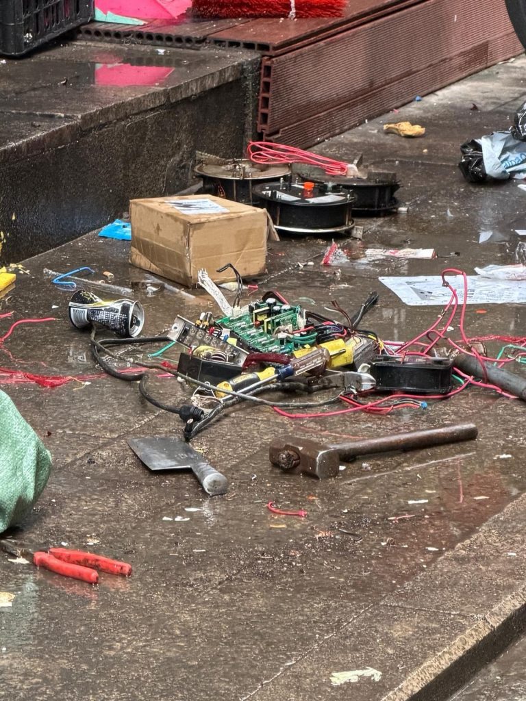 Not quite sure what has happened to his motorbike, first saw pliers, then hammer, then cleaver!!!