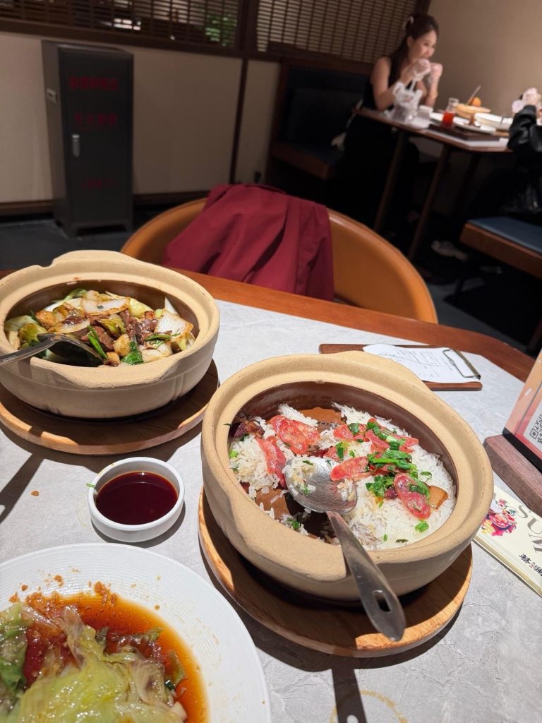 Had early supper at Chua Lam’s, very simple but nice clay pot, beef and spring onion, and dried meat (Chinese sausage) rice and fried lettuce with Tow Wa for after to please Ying