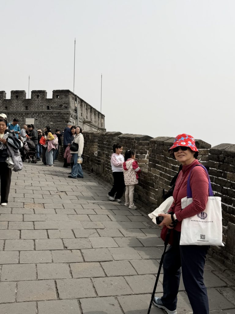 We then paid about £14 each to join a series of queues for the cable car eventually reaching the car and thence the wall. Unfortunately we hadn’t realised this was a public holiday weekend in China for Ching Ming (tomb sweeping day) so the wall and ascent were heaving. We made it to two towers. The wall itself is awesome not strictly by size, but by its length inaccessibility and manpower needed for construction