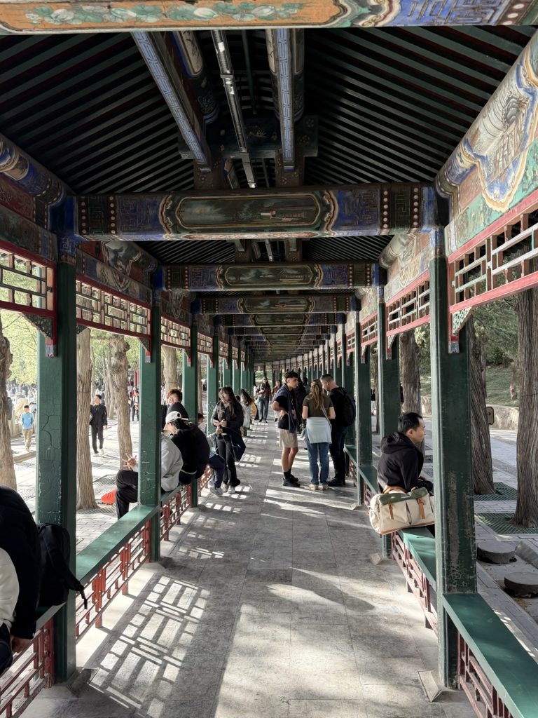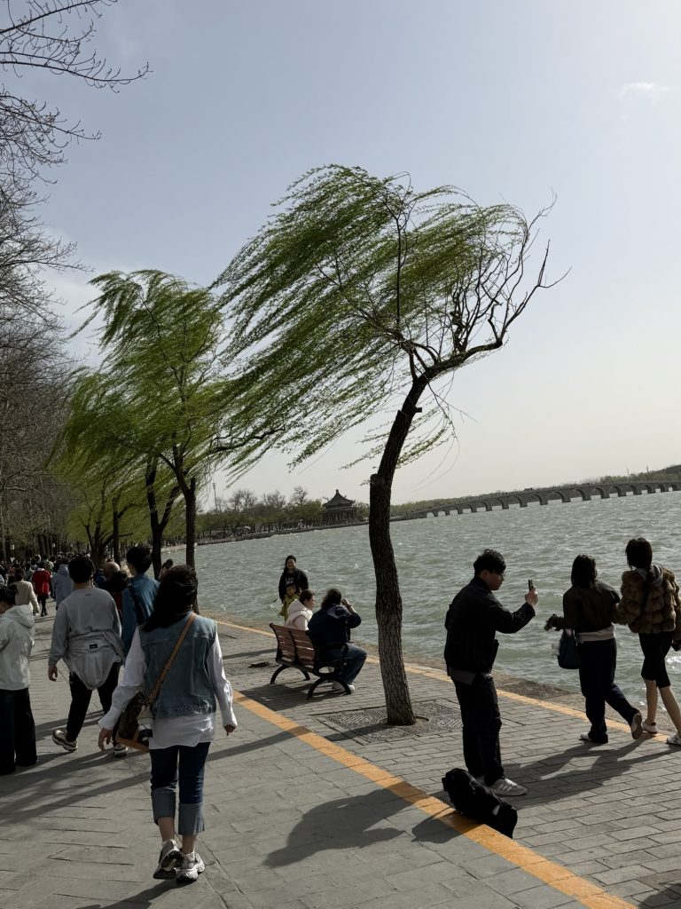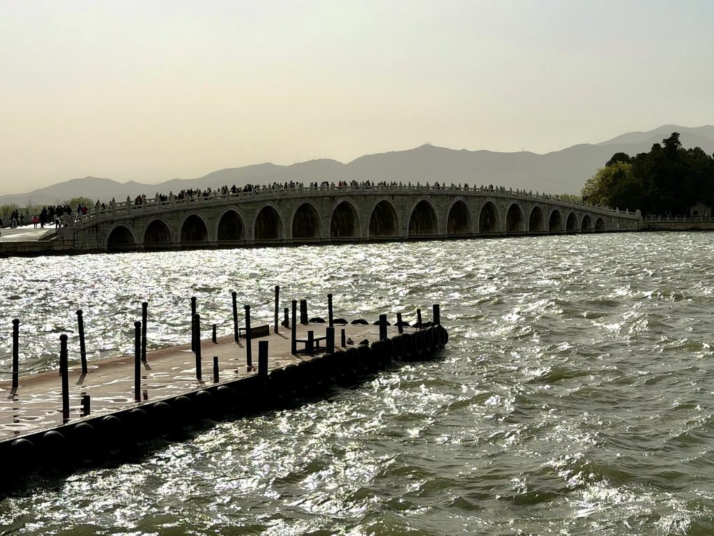 Onwards and back down to the summer palace where the other half of Beijing had descended to. We managed about 1/3 of the way round including the long corridor but it was also very windy suddenly. Essentially the summer Palace was constructed around a huge lake, predominantly along one side, with a magnificent catching bridge across to an island