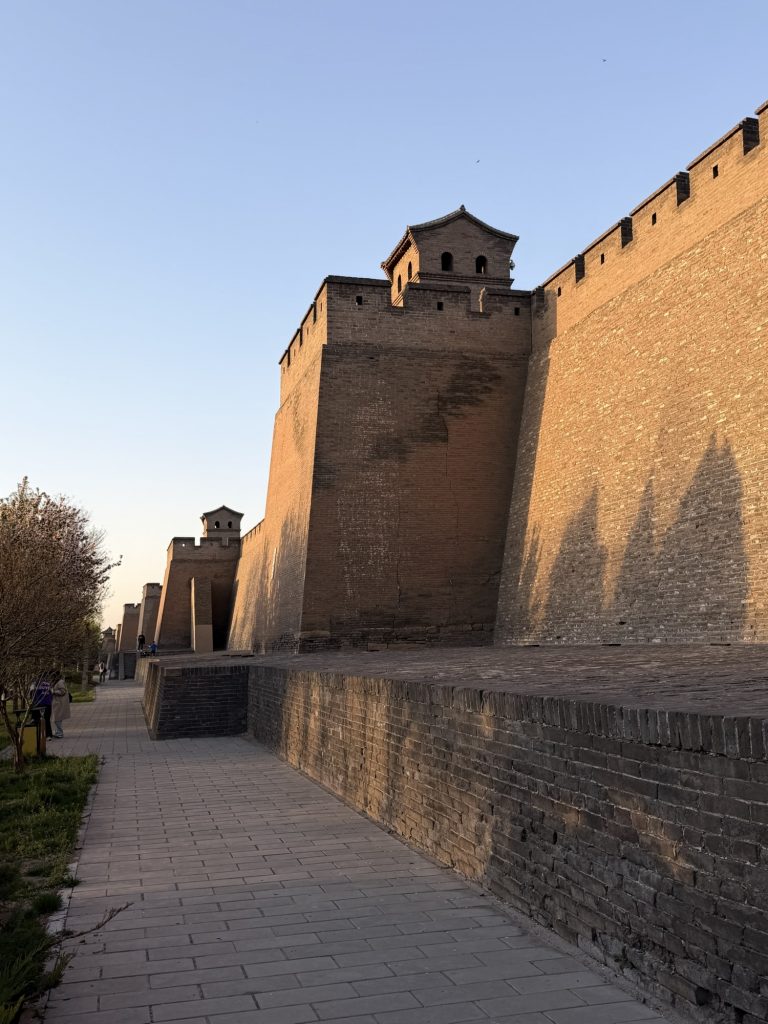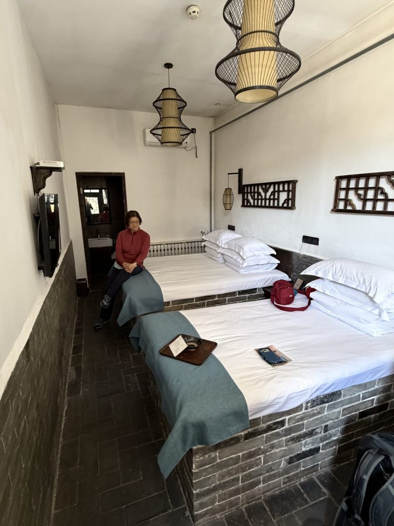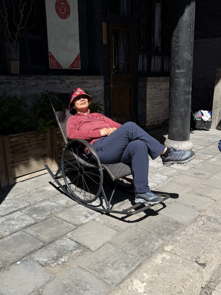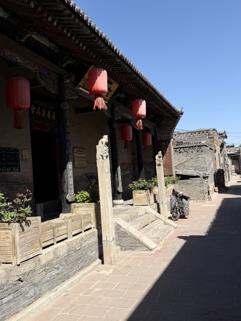 Arrived at Pingyau, 15 minutes taxi to “wrong end” of the ancient town! Allowed us to find some coffee and get an overview of town. We are just inside town wall. Must be about same size as Chester???
