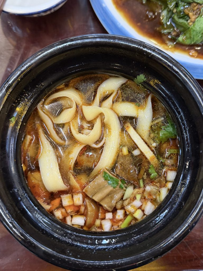 Lunch was typical beef Shanxi noodles (hand made thick noodle famous locally and deliberately slightly tough but very tasty