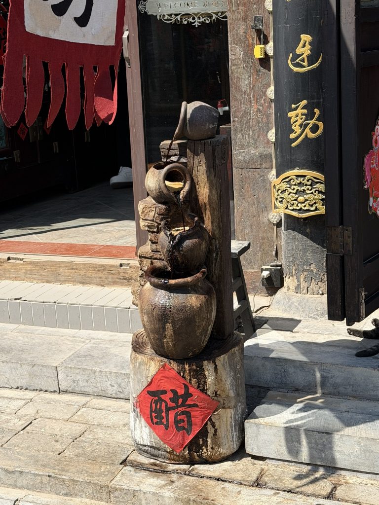 Pingyao is celebrated for its beef, and aged vinegar. (As well as yesterday’s Shanxi noodles). So for lunch we had local beef in aged vinegar, very tender and tasty