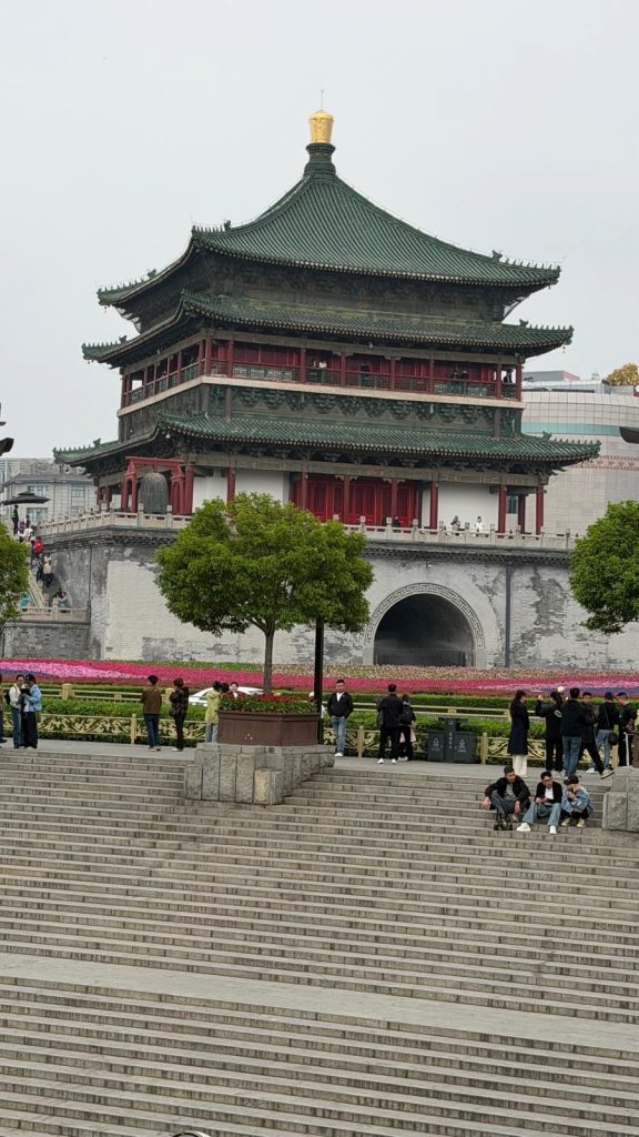 Xi’an city is surrounded by city walls 13km circumference with bell and drum tower inside